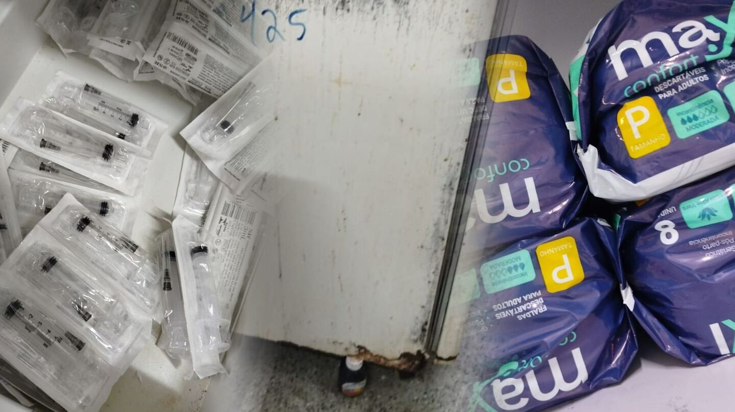 "O hospital está caindo aos pedaços literalmente" , disse ela mostrando a situação de um frigobar usado para armazenar medicação, insulina. A imagem encaminhada à nossa reportagem mostra o frigobar sendo sustentado na base por um frasco de xarope vazio.