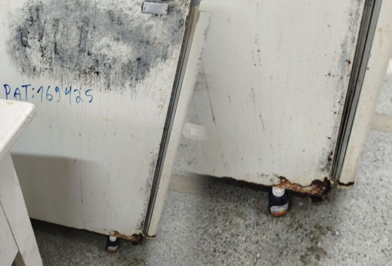 "O hospital está caindo aos pedaços literalmente" , disse ela mostrando a situação de um frigobar usado para armazenar medicação, insulina. A imagem encaminhada à nossa reportagem mostra o frigobar sendo sustentado na base por um frasco de xarope vazio.
