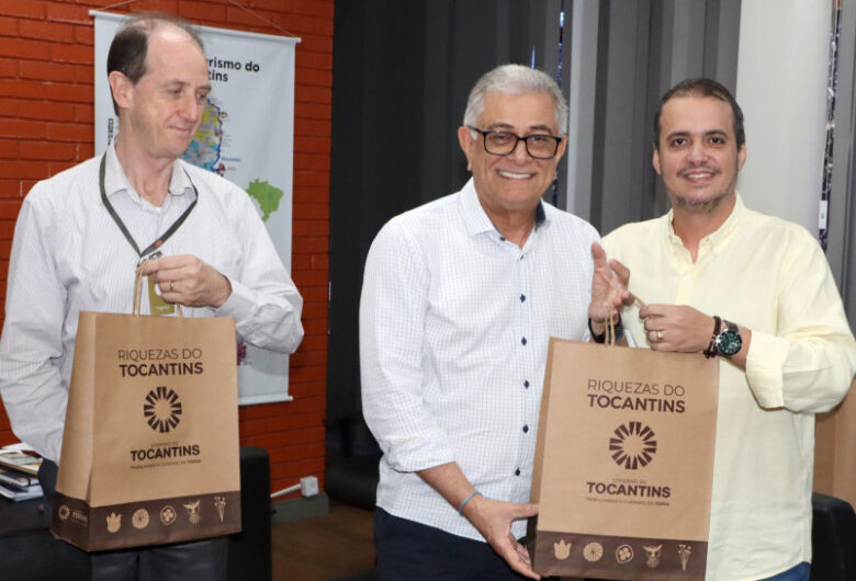 (E/D) Marcos Tognato, relações institucionais da Gol; Hercy Filho, secretário de Estado do Turismo, e o vice-prefeito de Araguaína, Israel Guimarães, durante encontro. - Crédito: Foto: Adiel Ponte/Governo do Tocantin