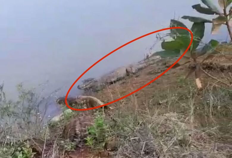 Um vídeo que circula nas redes sociais mostra um jacaré tranquilamente na margem da Via Lago, em Araguaína. A cena inusitada foi registrada na tarde desta quinta-feira (12) e chamou a atenção de quem passava pelo local.