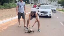 Bicho-preguiça para o trânsito e mobiliza resgate na Via Lago em Araguaína