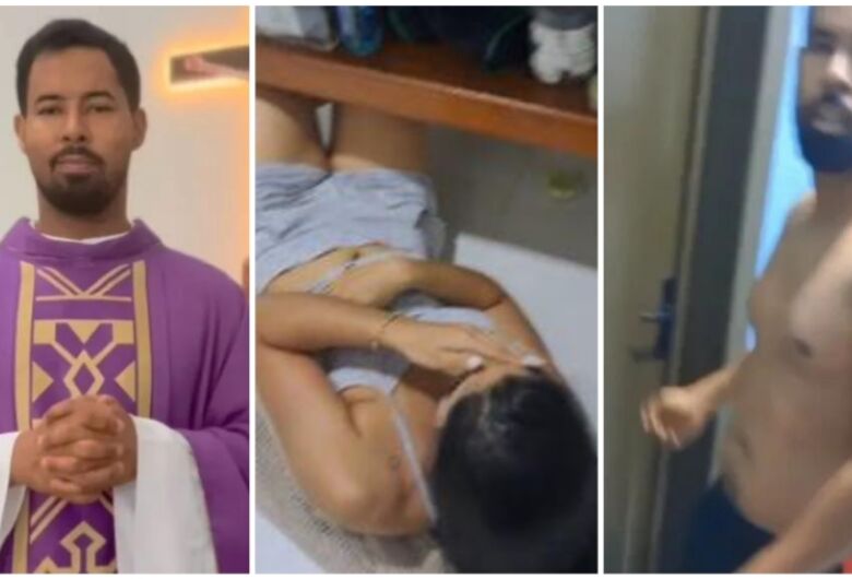 Um vídeo divulgado nas redes sociais mostra o momento em que o noivo da mulher arromba a porta do quarto e do banheiro após o padre se recusar a abri-las. Nas imagens, a noiva é encontrada chorando embaixo da pia do banheiro.