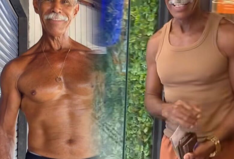 Um idoso de 70 anos viralizou nas redes sociais depois que o filho dele gravou ele saindo do banco pra receber a aposentadoria com o "shape em dia".