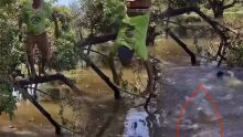 Salto vira susto: homem cai em cima de jacaré e vídeo viraliza