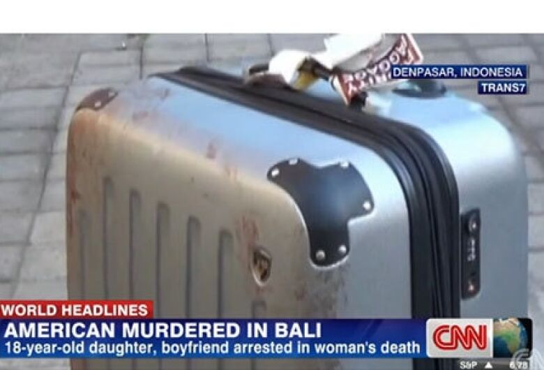 O corpo de uma americana de 62 anos foi encontrado dentro de uma mala, deixada um hotel de luxo em Bali, uma ilha da Indonésia. A filha da vítima, uma jovem de 18 anos, e seu namorado foram detidos pela polícia local, que investiga o assassinato.