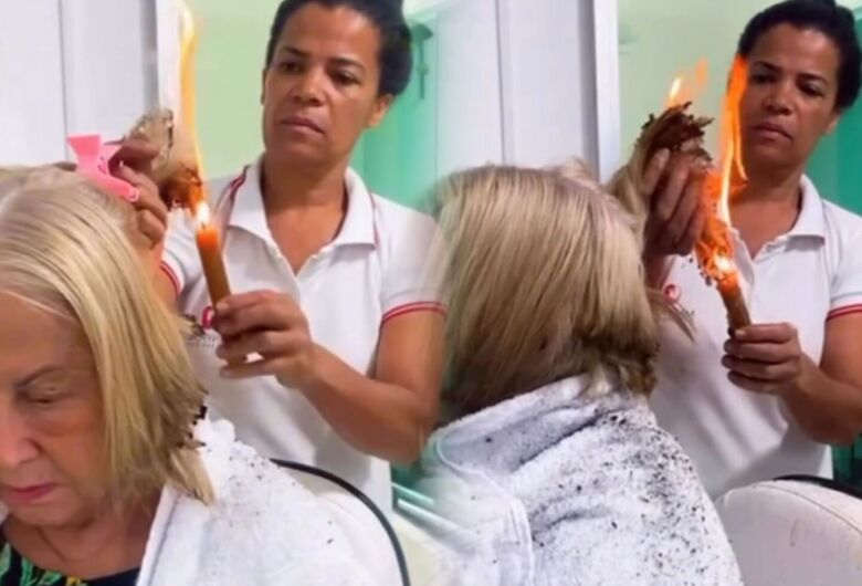 No vídeo, a cabeleireira aparece utilizando uma vela acesa para literalmente colocar fogo nas mechas da cliente durante o corte. A cena chama atenção pelo risco aparente e pela forma incomum de execução.