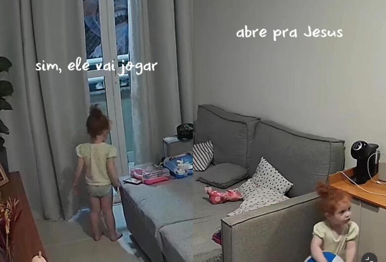 Nas imagens, a criança pede que a mãe abra a porta da varanda para que Jesus possa entrar. - Crédito: Reprodução Instagram