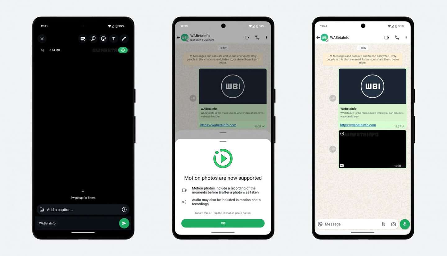 Segundo o site WABetaInfo, a versão beta 2.25.22.29 do WhatsApp para Android, disponível recentemente na Play Store, já permite o envio das fotos “live” mantendo o movimento.