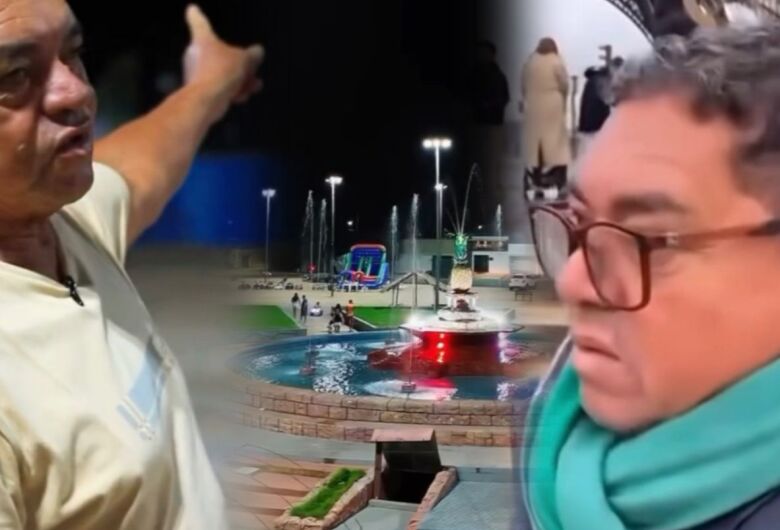 Com simplicidade e espontaneidade, Félix percorre a praça mostrando a fonte luminosa, o palco de eventos e o campo de areia.