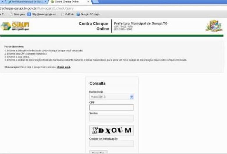 O endereço para acesso é o www.gurupi.to.gov.br, em seguida o servidor entrará no link contra cheque on line, e o servidor precisa ter em mãos o CPF e também informar um e-mail para confirmação dos dados. “No primeiro acesso ao sistema servidor deverá observar as instruções para cadastro da senha. As explicações estão passo a passo no próprio site”, afirmou coordenador de Tecnologia da Informação (TI), Alorran de Freitas Barbosa.