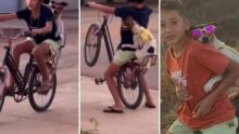 Menino do Tocantins bomba na web "dando grau" em bicicleta com cachorrinha