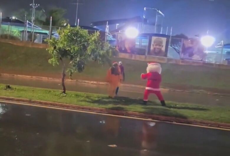 Uma cena inusitada repercutiu nas redes sociais neste final de semana em Palmas. Dois homens fantasiados, um de Papai Noel e outro caracterizado como o personagem Máskara, se envolveram em uma confusão em plena via pública, no setor Aureny III.