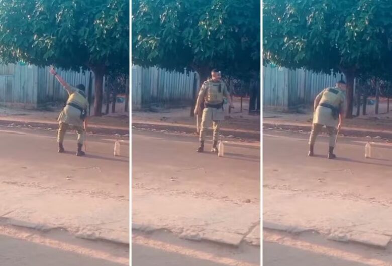 Nas imagens, o PM aparece jogando com uma bola e um pedaço de madeira que simula um taco. Para ele, a brincadeira foi também uma viagem à própria infância.