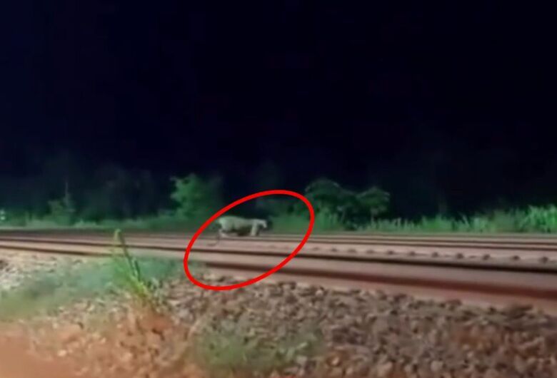 As imagens mostram o animal atravessando a linha férrea em uma área de vegetação. O local fica distante do perímetro urbano, mas é utilizado com frequência por moradores, produtores rurais e trabalhadores que circulam pela região.