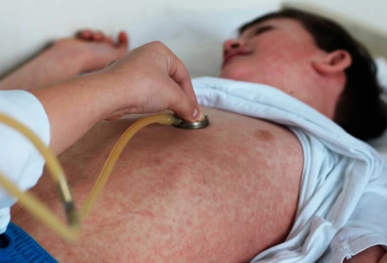 O sarampo é uma doença viral altamente contagiosa, transmitida pelo ar, com incubação de 7 a 14 dias. Os sintomas incluem febre alta, manchas vermelhas na pele, tosse, coriza, conjuntivite e dores no corpo. Em casos graves, pode causar pneumonia, encefalite e até levar a óbito.