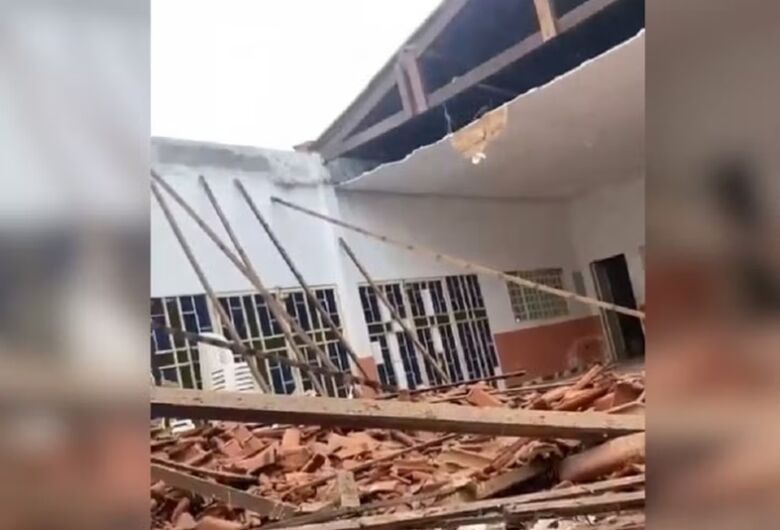 Teto de centro paroquial ficou destruído, em Santa Tereza do Tocantins - Crédito: Reprodução