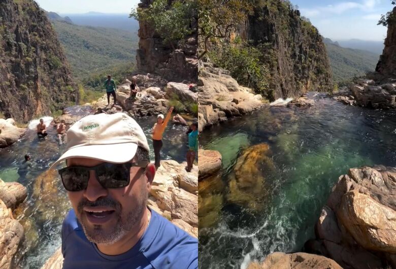 Em seu perfil no Instagram, Wanderlei fez uma selfie mostrando a "Cachoeira da Borda Infinita" que tem uma queda d'água de aproximadamente 80 metros e exaltou as belezas naturais do lugar que faz parte do Complexo Águas Lindas.