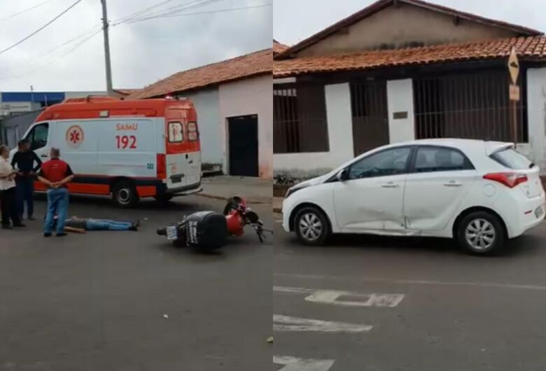 Acidente entre carro e moto deixa pessoa ferida e testemunha relata imprudência