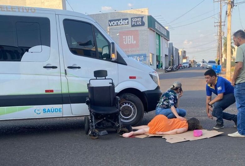 Uma cadeirante caiu no meio da rua depois de ter sua cadeira atingida por uma van em Araguaína no Norte do Estado.