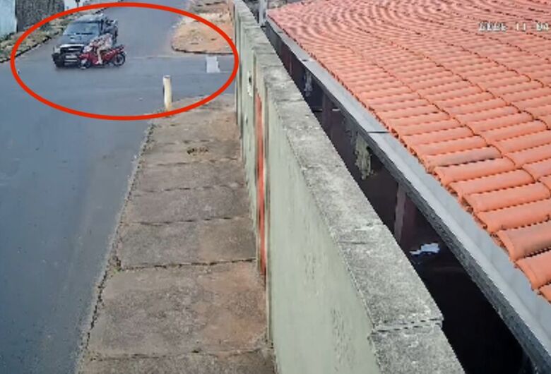 Nas imagens é possível ver que a condutora da moto não respeitou a sinalização de “PARE” e avançou no cruzamento, provocando a batida.