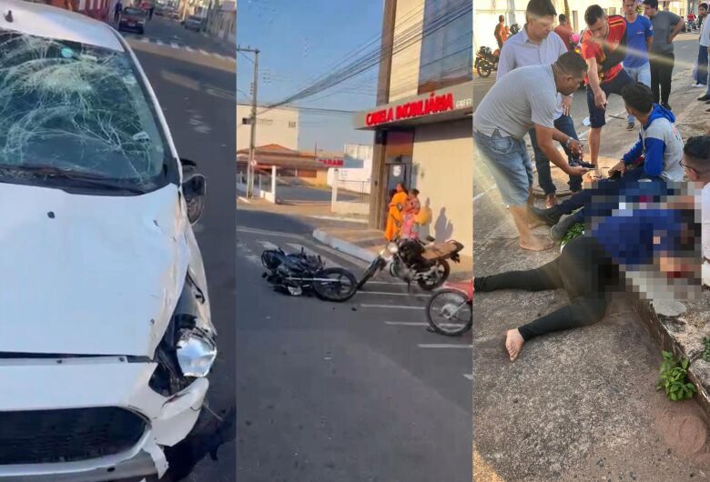 A colisão foi registrada no cruzamento das Ruas Gaúcha e dos Maçons próximo à agência do INSS. Com a batida a parte frontal do carro ficou bastante danificada e a motocicleta também.
