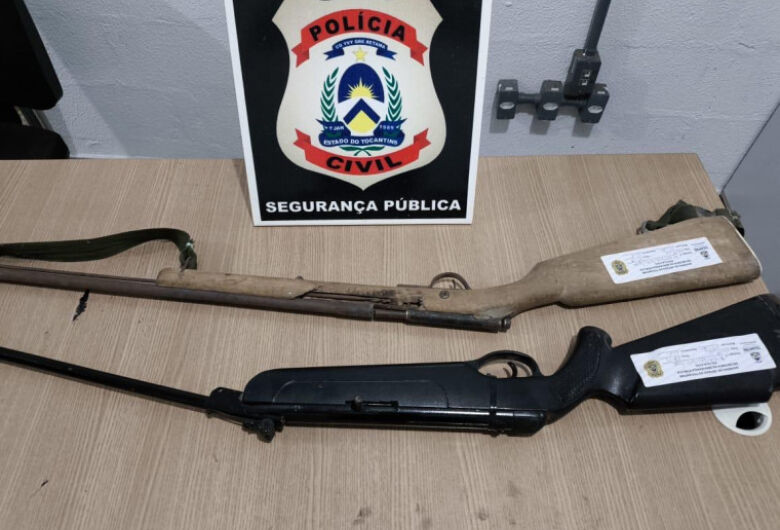 A Polícia Civil do Tocantins apreendeu duas espingardas e prendeu um homem de 42 anos, identificado pelas iniciais A.R.P., durante a Operação Gatilho, realizada na manhã desta segunda-feira (4), em Paraíso do Tocantins. A ação investiga crimes como lesão corporal, ameaça de morte, disparo e posse ilegal de arma de fogo.
