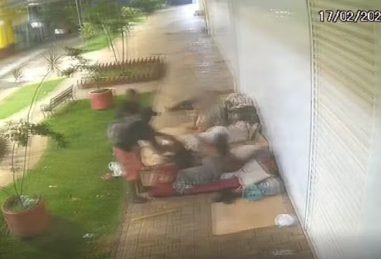 Momento em que agressores puxam homem para canteiro e o matam - Crédito: Reprodução