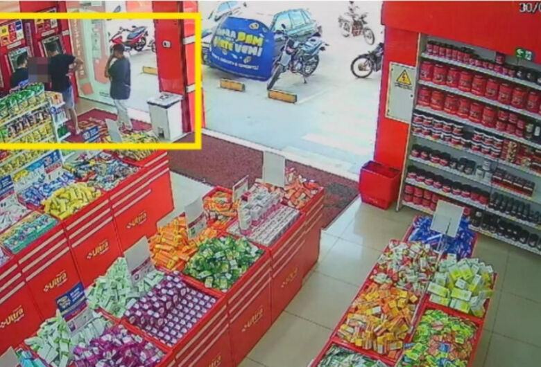 As gravações mostram os suspeitos abordando a vítima em um caixa eletrônico de uma farmácia e, depois, dentro de uma agência bancária realizando transações.