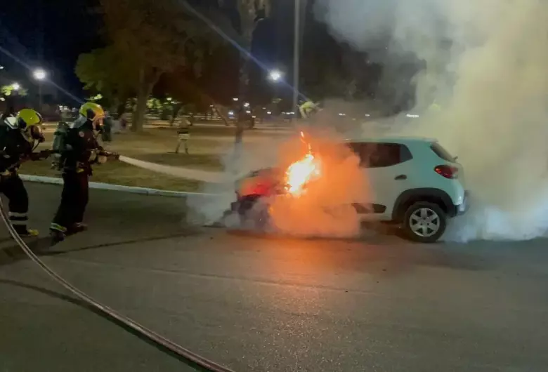 Um carro pegou fogo na noite desta sexta-feira (19), por volta das 19h, na rotatória próxima ao Hipermercado Assaí, em Palmas. O Corpo de Bombeiros foi acionado e conseguiu controlar rapidamente as chamas.