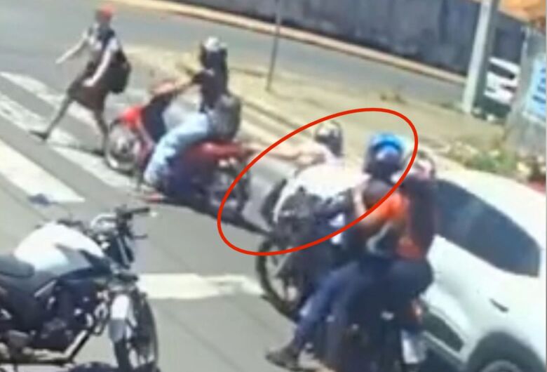 As imagens mostram motociclistas parando na faixa mas a motorista de um carro de passeio que também transitava na rua, desatenta não respeitou a sinalização e acabou colidindo em uma das condutoras que foi parar no chão.