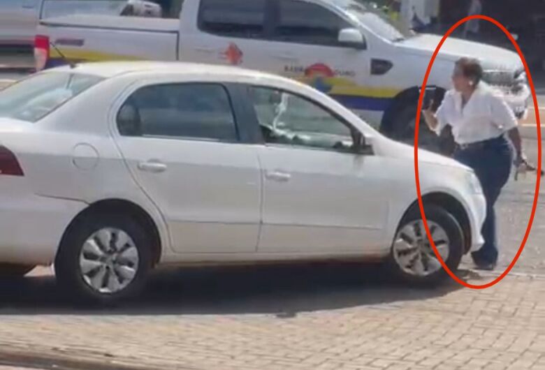 Nas imagens, a mulher aparece em frente ao veículo, tentando impedir a fuga. O motorista acelera e chega a atingir a mulher, que pede ajuda e solicita que populares chamem a polícia.