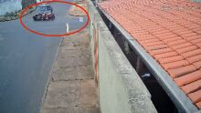Câmeras flagram momento exato de acidente entre caminhonete e moto