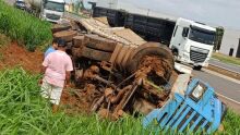Carreta carregada de soja tomba no perímetro urbano da BR-153 em Araguaína