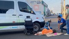 Cadeirante é atingida por van e cai no meio da rua em Araguaína