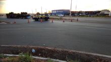 Caminhão carregado de arroz tomba em rotatória de Araguaína
