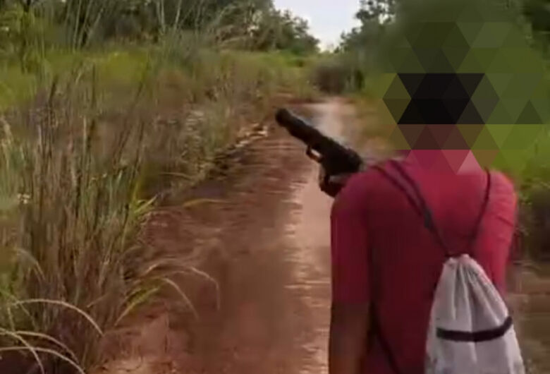 Em um dos vídeos, um dos adolescentes aparece exibindo as armas e caminhando descalço com o comparsa em uma área de mata.