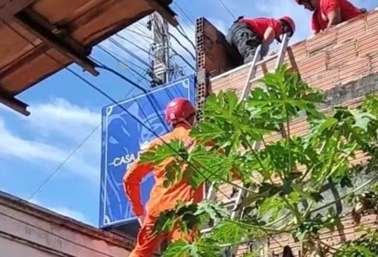 Momento do resgate da vítima de descarga elétrica - Crédito: Divulgação Bombeiros