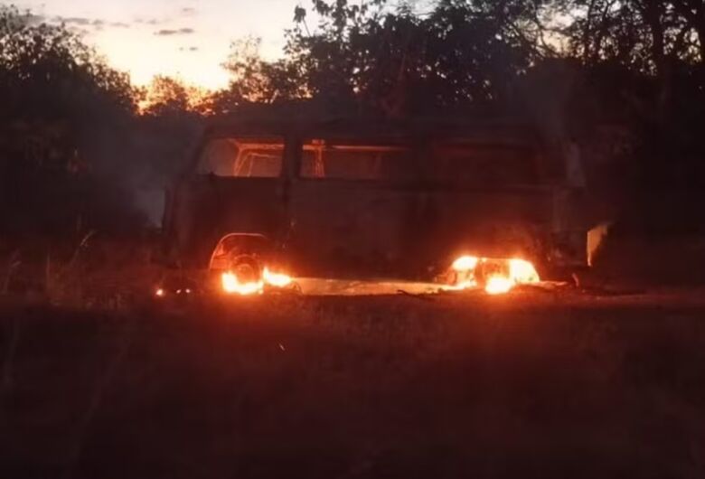 Kombi escolar pegou fogo na zona rural de Formoso do Araguaia - Crédito: Reprodução
